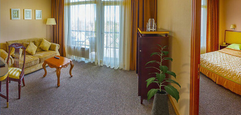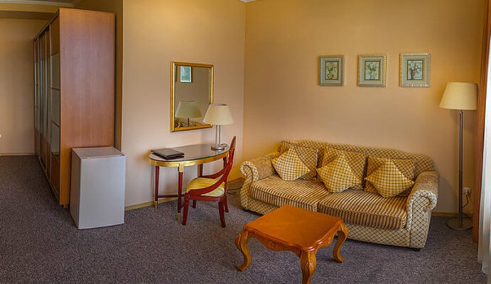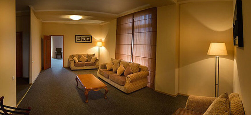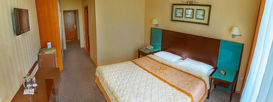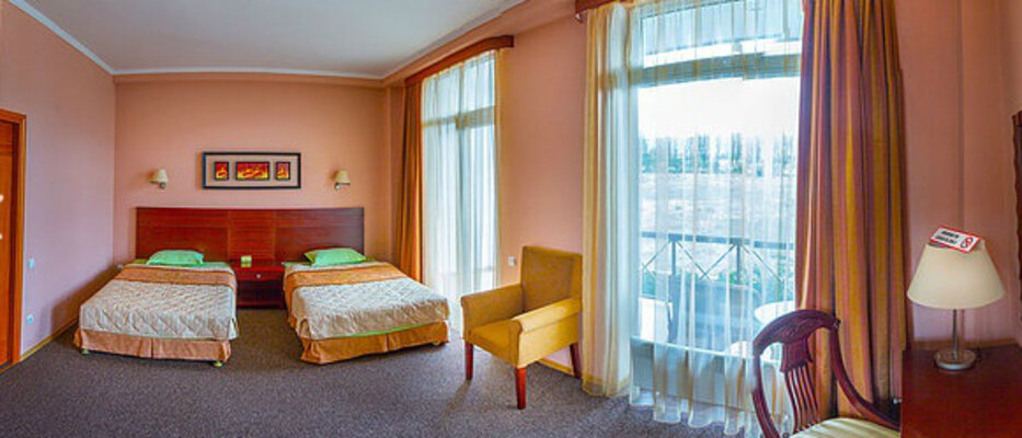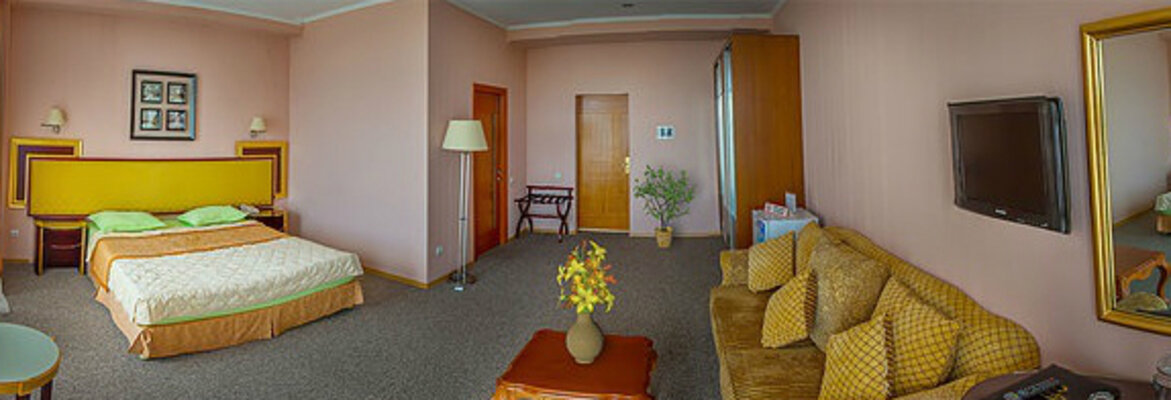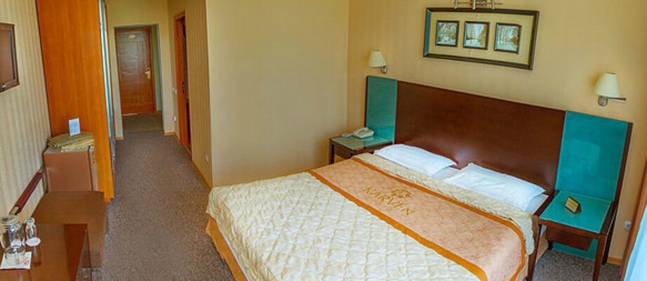 Гостевой дом представлен трехэтажным спальным корпусом и уютными домиками для уединенного отдыха. В каждом номере имеются: телевизор, сейф, телефон, электрический чайник, Wi-Fi, индивидуальный санузел с душем, полотенцами, тапочками, халатами, туалетными принадлежностями и феном.