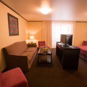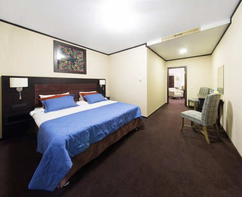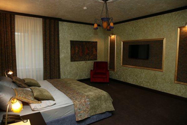 Территория занимает открытое пространство в предгорье горы Каим, откуда открываются живописные виды. Номера отличаются современным дизайном и продуманностью деталей. Проживание в 3-комнатных тематических номерах «Венеция» и «Серебряный век» позволяет получить статус «Особого Гостя» с расширенным перечнем привилегий.