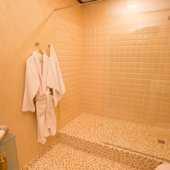 Бассейн уличный и имеет систему подогрева. Для детей оборудован отдельный бассейн рядом с основным. Тренажерный зал оснащен многофункциональными тренажёрами: зона кардио-, силовых тренажёров и свободных весов. Тренировки возможны как с инструктором, так и самостоятельно. Уличная спортплощадка также мультифункциональна.