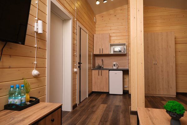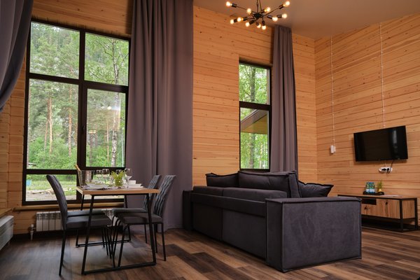 В отеле есть комфортабельные и просторные домики на 8 номеров, расположенные среди реликтового леса, густого папоротника и горных вершин, с панорамными окнами. Территория отеля оснащена Wi-Fi, а также есть сигнал сотовых операторов МТС, Билайн и Мегафон.
