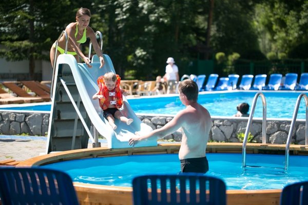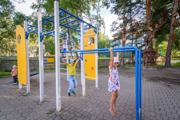 В хорошую погоду развлекательные мероприятия проводятся на детской игровой площадке.