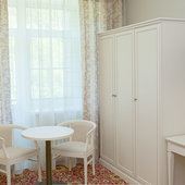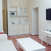 Дети до 4-х лет без предоставления дополнительного места (на одной кровати с родителем) размещаются бесплатно. Дополнительное питание можно приобрести в санатории.