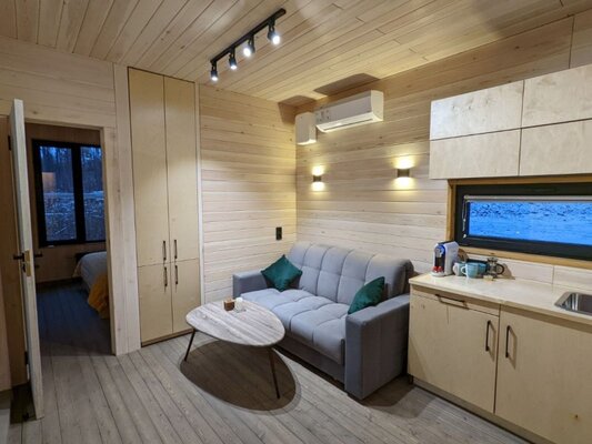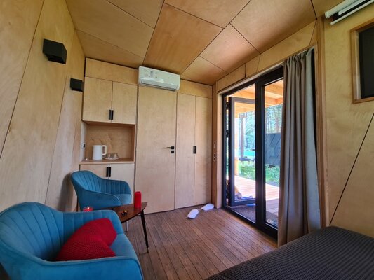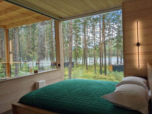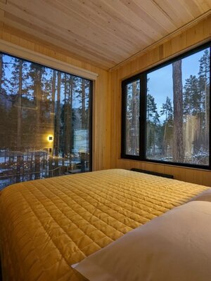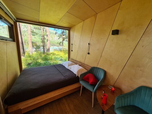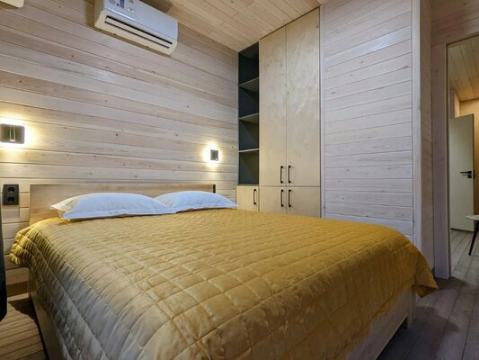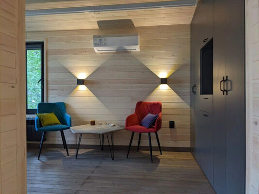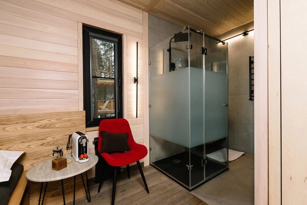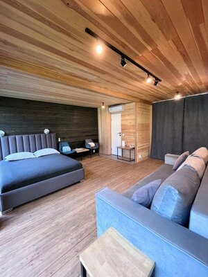 19 стильных номеров «Бар», с панорамным остеклением и космическими матрасами, создают атмосферу уюта и минимализма, погружая вас в тишину и очарование окружающей природы. В интерьере использованы натуральные материалы, которые подчеркивают связь с природой.