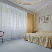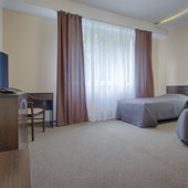 Санаторий примечателен не только своим удачным местоположением, целительными особенностями здешних мест, но и исключительной технологичностью, развитой инфраструктурой и первоклассным сервисом. Все номера оснащены системой электронных замков, сейфами, телефонами, холодильниками, фенами и прочими бытовыми удобствами. Лечебная база санатория оборудована новейшей медицинской аппаратурой.