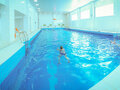 В бассейне поддерживается комфортная температура и используется профессиональная, многоуровневая система очистки и подготовки воды. Посещение бассейна входит в стоимость оздоровительной путевки и назначается (если нет противопоказаний) по путевке общего профиля и вертеброневрология.