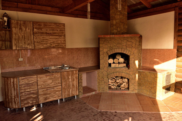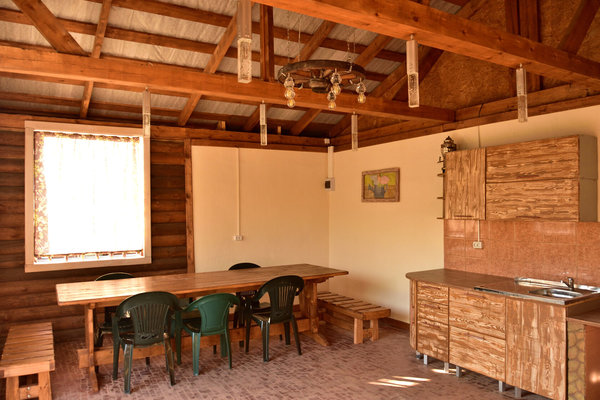 Для компании до 30 человек: оборудованная кухня, камин, печь, обеденный стол, организация банкетов.
