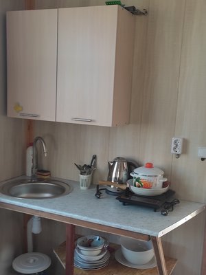 Домик комфортный, есть все принадлежности для кухонной зоны, душа ( полотенце, средство для мытья посуды, туалетная бумага и т.п.), жена рада была наличию утюга, телевизор для вечернего время припровождения, также на участке имеется отдельная мангальная зона, что соответствует пожарной безопасности, уличный душ, туалет, полное освещение, видео наблюдение территории, очень приветливая и отзывчивая хозяйка Светлана.