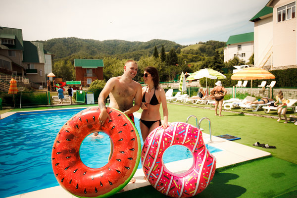 В теплое время года для всех гостей санатория бесплатно работает летний бассейн с системой подогрева и очистки воды, с каскадом, горкой.