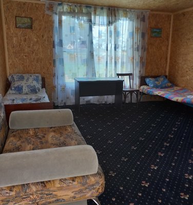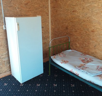 База состоит из двух корпусов. Первый корпус имеет один этаж и три номера на три человека. В номере есть кровати, стол, кресло или стул, а также постельные принадлежности, белье и терраса с столом и скамейками. Второй этаж первого корпуса состоит из трёх четырёхместных номеров с кроватями, постельными принадлежностями, бельём, столом, стулом и видом на озеро с балкона.