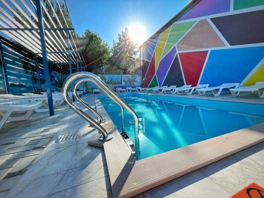 Для гостей доступен открытый бассейн под открытым небом, который работает в летний сезон. В нескольких минутах ходьбы находится городской пляж, где гости могут арендовать лежаки и шезлонги. Для путешественников, прибывших на личном автотранспорте, предусмотрены парковочные места рядом с гостиницей для удобства.