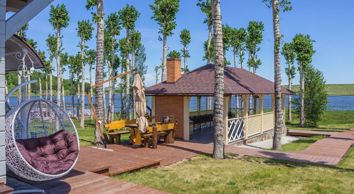 - аренда беседки (до 12 человек), 1 час / 1 день — 1500 ₽ / 5000 ₽;