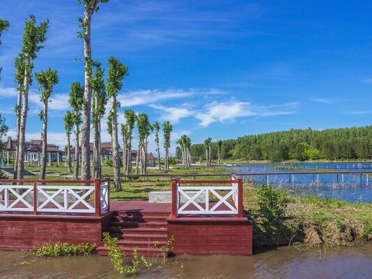 На территории площадью 4 гектара, способной вместить до 70 гостей, создана атмосфера полного уединения и тишины, где каждый найдет свой уголок покоя.