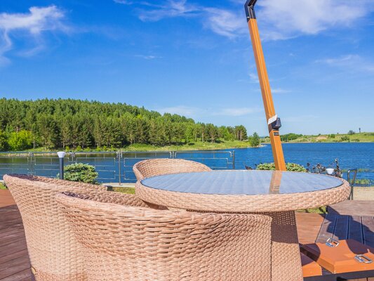 Любители рыбалки могут половить в озере карпа, карася, окуня, толстолобика и щуку. Пойманную рыбу можно пожарить самостоятельно на мангалах, которыми оборудованы беседки, или заказать приготовление нашим поварам.
