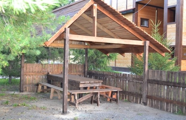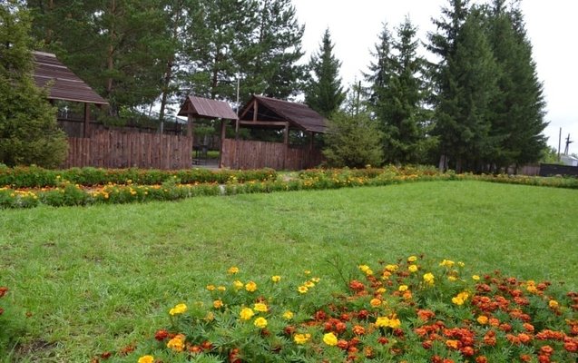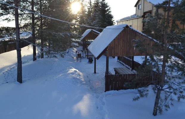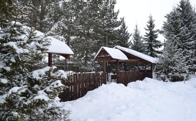 Территория турбазы огорожена высоким деревянным забором. На территории произрастает около сотни деревьев: елей, сосен, кедров, берез, несколько десятков декаративных и плодовых кустарников, находится: здание турбазы с котельной, торговой лавкой, две бани, два уличных бассейна, площадка для минифутбола, пляжного волейбола, летний клуб с навесом, оборудованное костровище с лавочками, беседка на 20 гостей, 3 беседки на 10 гостей каждая, стоянка для автомобилей.