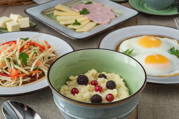 Например, каши — пшенную с маслом или рисовую с черносливом, а также яичницу-глазунью и омлет с ветчиной. Они подаются сразу же, с пылу с жару, и не застаиваются.