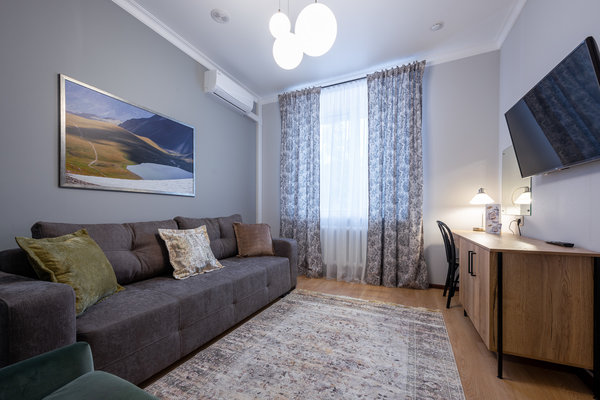 Расположен на 2 этаже с видом на горы и летнюю террасу.