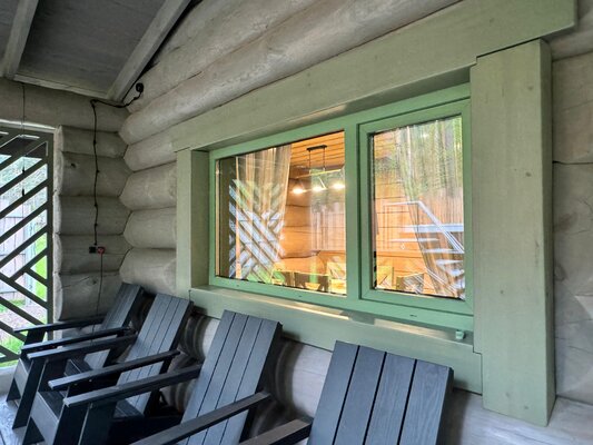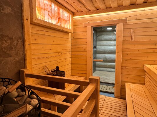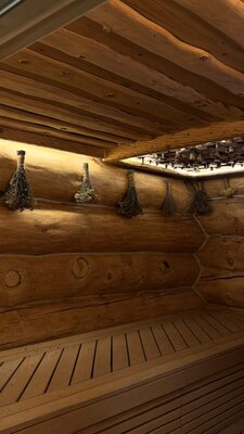 К вашим услугам: вместительная парная, комната отдыха, душ, обливное ведро с ледяной водой, комната для переодевания. На улице: горячий чан на огне с еловыми ветками, банная качель, зона отдыха на вместительной террасе.