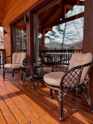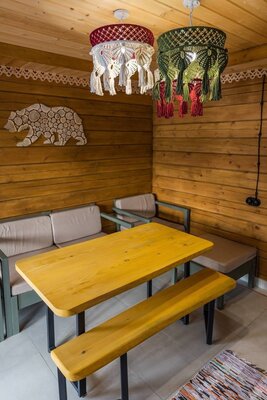 Русская баня с панорамным видом на горы и реку Катунь — это место, где можно насладиться расслабляющим мягким паром и приятной атмосферой, а после процедуры можно восстановить силы в комфортабельной комнате отдыха.