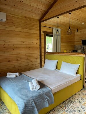 Гостям предлагается березовый веник, полотенца, простыни, тапочки и моющие принадлежности, которые сделают пребывание еще более приятным. За дополнительную плату доступен мини-бар. Для любителей чая есть все необходимое для того, чтобы сделать чаепитие по-настоящему незабываемым.