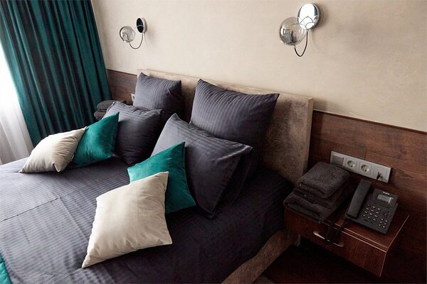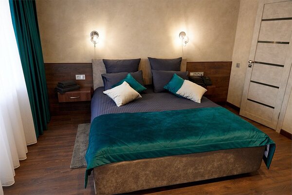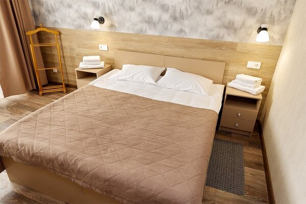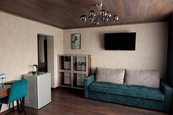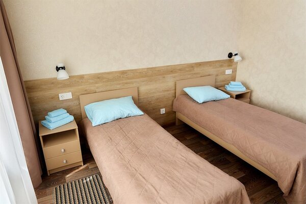 На просторной территории в 14 га расположены 7 благоустроенных домов для летнего проживания и жилые корпуса разной этажности, в том числе пятиэтажный корпус, оборудованный лифтом и соединенный переходом со столовой и лечебным корпусом. Большой жилой фонд, способный одновременно принять около 300 отдыхающих, предлагает разнообразные категории комфортабельных номеров. В санатории есть как небольшие бюджетные номера, так и просторные апартаменты, оборудованные мини-кухней. В каждом номере есть собственная ванная комната, ЖК-телевизор и небольшой холодильник.