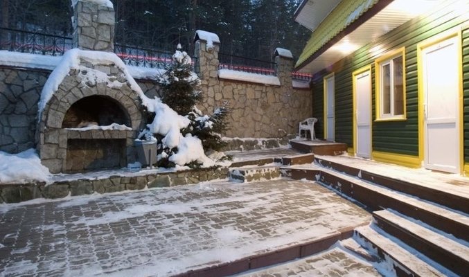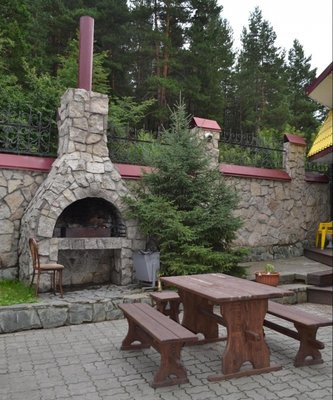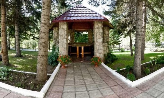 На территории пансионата для гостей организованы места для отдыха: детская игровая площадка, зона барбекю с огромной каменной печью, каменная беседка в окружении величавых елей.
