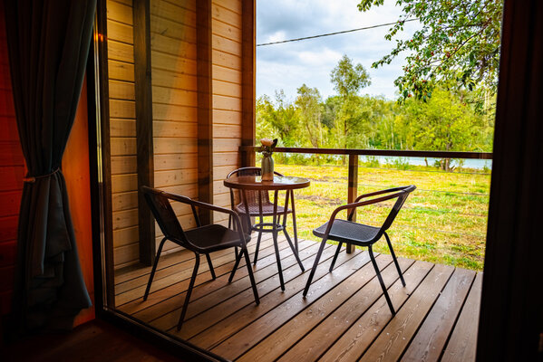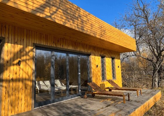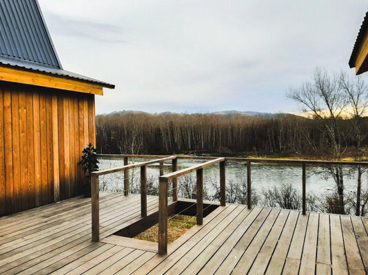 Сауна с комнатой отдыха с панорамным остеклением и террасой на берегу Катуни
