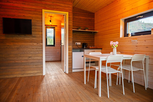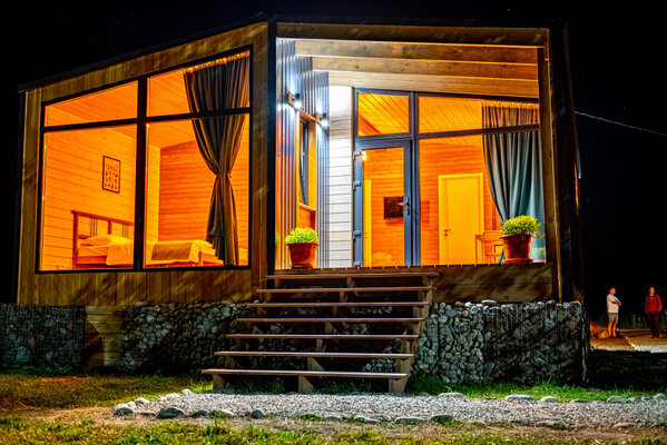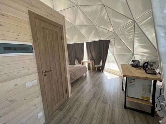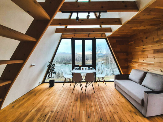 На территории комплекса имеются уютные домики и апартаменты с прекрасным видом на реку Катунь. Каждый домик оборудован террасой, удобной мебелью, телевизором, холодильником, чайником и душевой кабиной в ванных комнатах.
