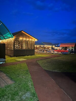 Инфраструктура базы включает уютную беседку с зоной для мангала, уличные душевые и современный уличный туалет с удобствами и раковинами.