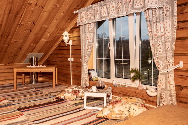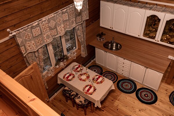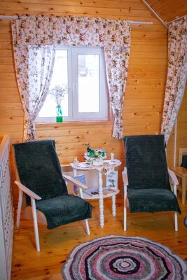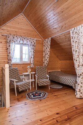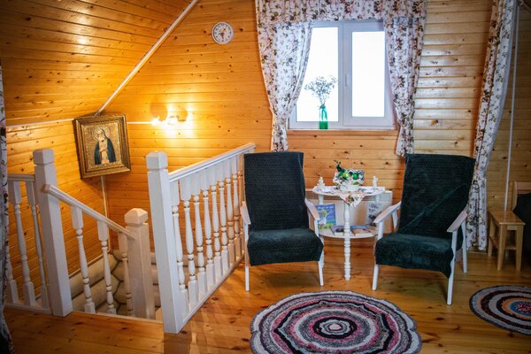 Гостям предоставлены уютные дома, оснащенные всем необходимым. Внутри домов есть горячая и холодная вода, ванные комнаты с душем. Вечер можно провести за просмотром телевизора, в чтении книги или за настольными играми, а камин-печь согреет в холодные дни. В Большом доме также есть баня.