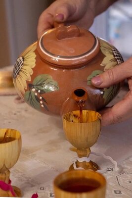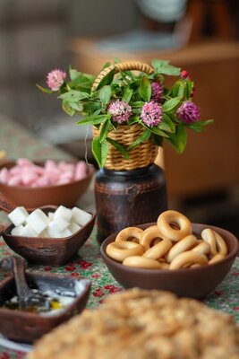 - сытный деревенский обед из русской печи «Вкусы северной деревни». Блюда приготовлены по старинным рецептам деревни Квашнинская, подаются в деревянной и глиняной посуде, сделанной по специальному заказу местными умельцами;