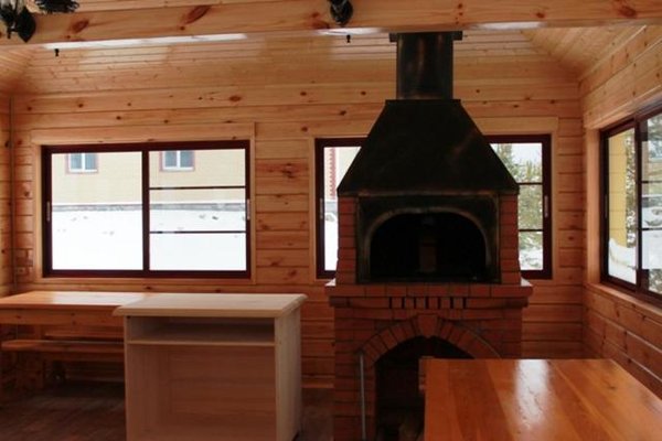В беседке размещены шесть столов с комфортными стульями, вмещающие до тридцати пяти человек, а также оборудована печью для барбекю и коптильней. Это пространство идеально подходит для проведения семейных торжеств, свадебных регистраций и корпоративных мероприятий, создавая уютную и праздничную атмосферу.