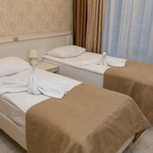 Светлые и уютные номера различных категорий оснащены комплектом мебели и аксессуаров, предусмотренными правилами индустрии гостеприимства, кабельным телевидением, телефонной связью, WI-FI.