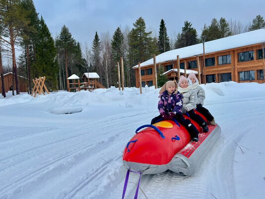 Вас ждут комфортабельные номера, изысканная кухня русского и авторского исполнения в нашем ресторане, а также множество развлечений на любой вкус: экскурсии по местным достопримечательностям, прогулки на велосипедах, лодках, лыжах, катание на тюбингах и «зимнем банане», посещение фермы и расслабляющие процедуры в бане. Для маленьких гостей оборудованы детская площадка и игровая зона.