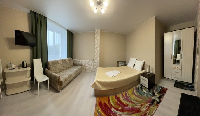 Замечательный отель! Все чисто и уютно. Особенно порадовало наличие кухни с необходимой техникой. Расположение также удобное, пешком можно дойти до Севмаша. Рядом находится круглосуточный магазинчик, где есть готовая еда, что является еще одним плюсом.