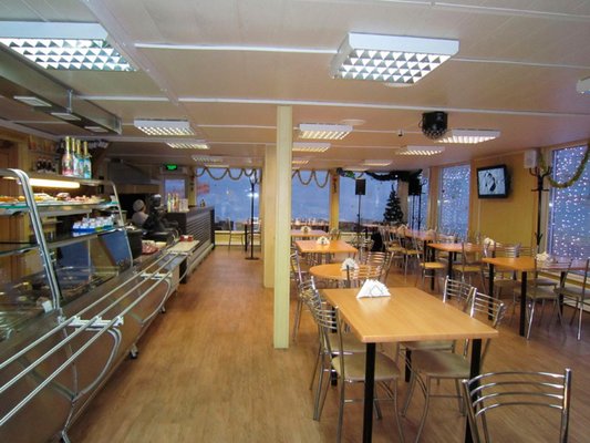 Время от времени кафе превращается в спорт-бар, когда любители спорта собираются сюда для просмотра соревнований по биатлону, лыжным гонкам, хоккея или футбола.