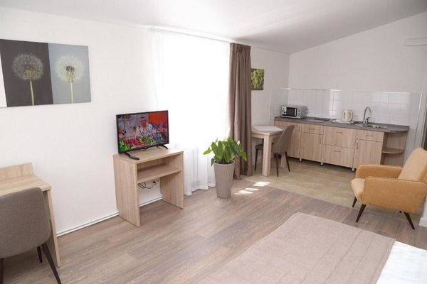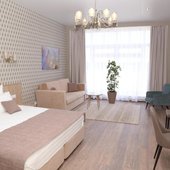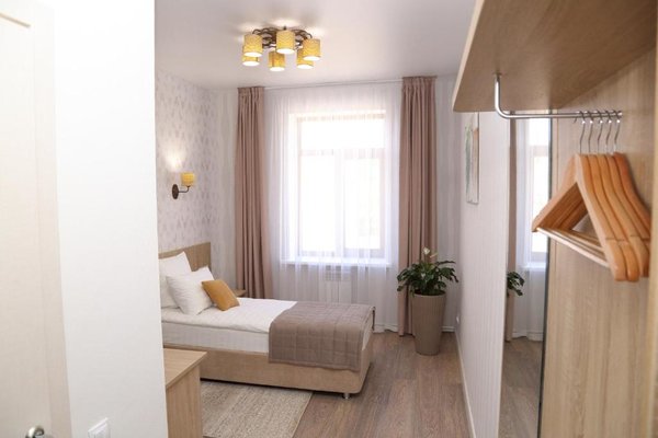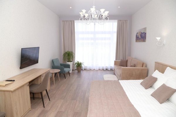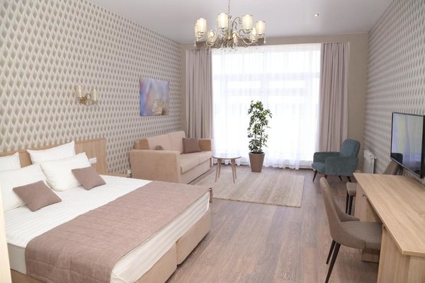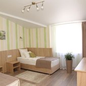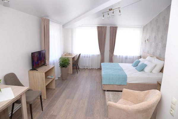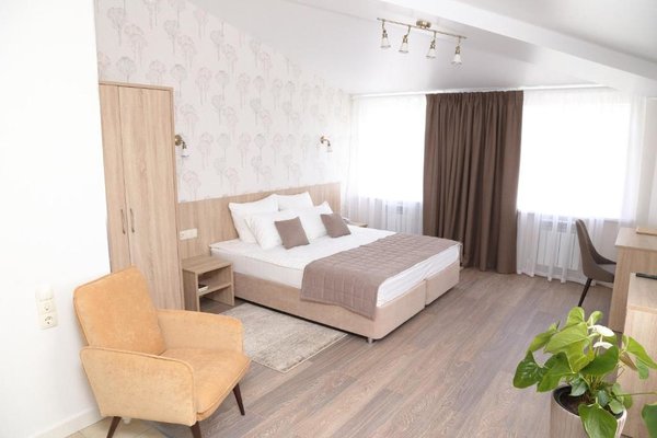 Комфортные с современным дизайном и хорошим оснащением номера – прекрасная возможность размещения как деловых людей, так и для отдыхающих с семьей и путешественников. Номерной фонд Отеля - 15 номеров разных категорий: 1 и 2 местные стандартные, номера высшей категории Джуниор Сюит и Студио. Бесплатная парковка и бесплатный Wi-Fi на территории всего отеля.