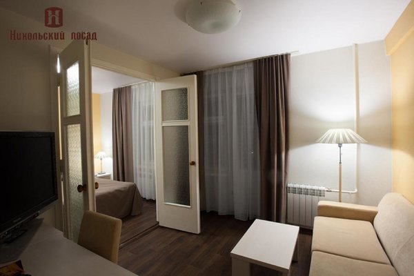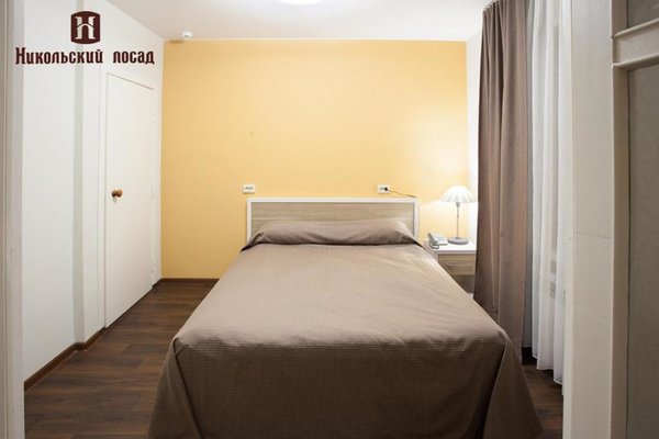 Отель удобно расположен в самом центре города Северодвинска – на перекрестке улицы Карла Маркса и проспекта Труда. Для гостей, приезжающих в наш город на автомобилях, около гостиницы есть удобная парковка. Посетители «Никольского посада» могут выбрать один из 61 номера различных категорий – от простого одноместного до люксов повышенной комфортности и VIP-студии с сауной.
