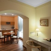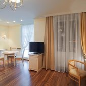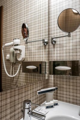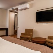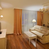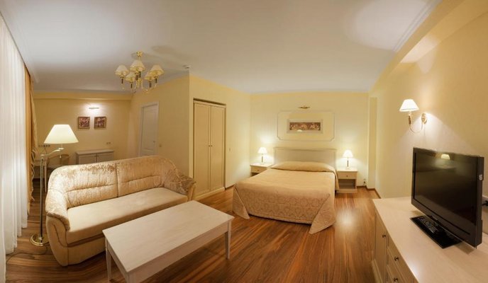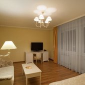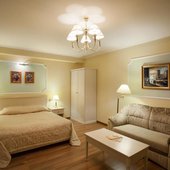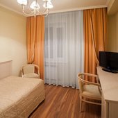 Каждый из них оснащен телевизором, телефоном, холодильником или мини-баром, электрическим чайником, посудой, столовыми приборами. В каждом номере оборудован свой санузел. Номера повышенной комфортности дополнительно оснащены современными системами вентиляции, гладильными станциями, сейфами. Во всех местах гостиницы есть возможность пользоваться интернетом – доступ к беспроводной сети Wi-Fi предоставляется бесплатно.