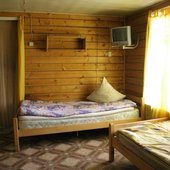 Турбаза «Алимовский плес» предлагает несколько видов жилья – то щитовые домики, саманные дома и дома из бруса.