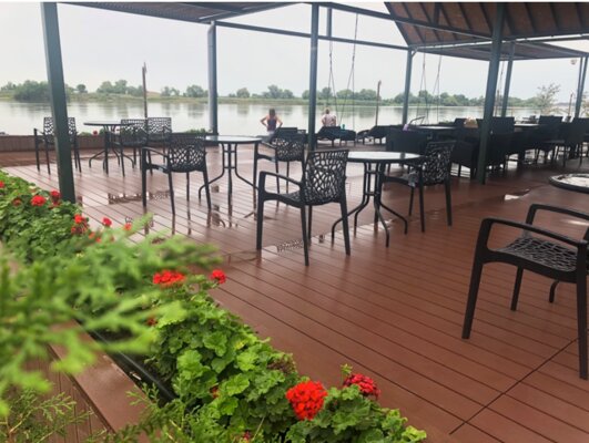 Здесь открывается прекрасный вид на Волгу, проходящие мимо корабли и центральную набережную клуба. Веранда готова к любым погодным астраханским весенне-летним катаклизмам — есть как тёплые пледы на случай весенне-осенней прохлады, так и высокая крыша с перголой на случай жары. Рассчитана на 60 посадочных мест и своей формой и конструкцией создает полное ощущение того, что вы воссоединяетесь с природой.