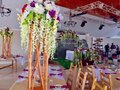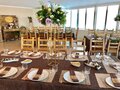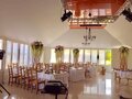 Зал шатрового типа 200 кв.м (20 м х 10 м). Кухня — 6 м х 3 м (газовая плита, холодильник, раковина-мойка, 2 разделочных стола, 2 шкафа для посуды).