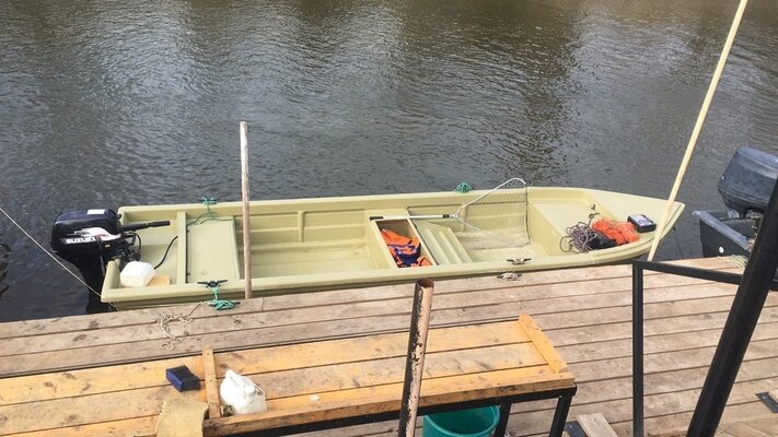 Лодка 5 метров с мотором 9.9 без егеря. Права не нужны. ГСМ оплачивается по факту расхода.