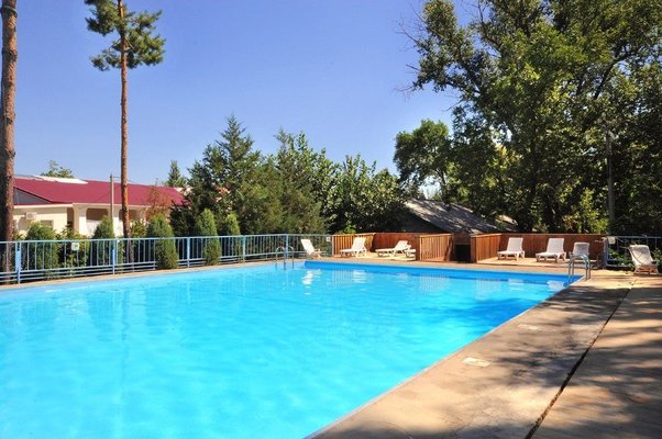 Есть открытый бассейн с чистой водой. Домики двухместные, вполне комфортные. В принципе, цена соответствует качеству.