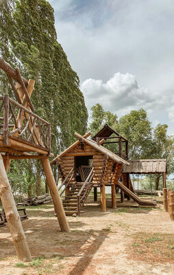 Можно просто погулять по территории: покататься на качелях, посидеть в беседке на закате или арендовать зону у костра.