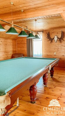 В сауне находится бильярд — русский, дорогой, на столешнице из природного камня.