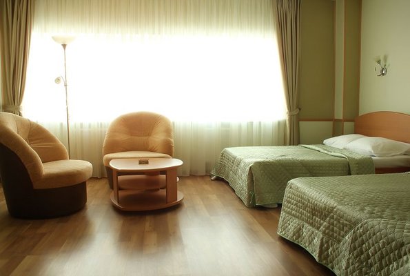 Для аренды предлагаются уютные номера разных категорий, оснащенные всем необходимым для комфортного проживания, включая кондиционер, фен, телевизор и собственную ванную комнату. Также доступен бесплатный Wi-Fi, парковка на территории отеля, услуги прачечной и глажки.