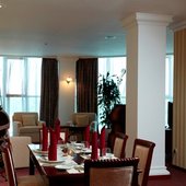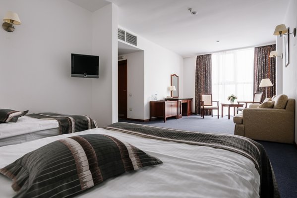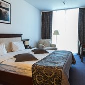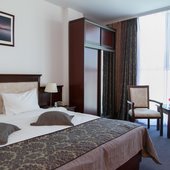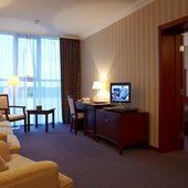 В уютных номерах тепло и комфортно, индивидуальная ванная комната оборудована феном, есть комплект полотенец и халаты. Среди дополнительных удобств — кондиционер, спутниковое телевидение, мини-бар, высокоскоростной Wi-Fi. Имеется гостиная зона с панорамным видом на реку и город. Ежедневно в номерах проводится уборка.