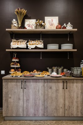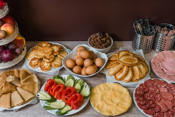 Гости могут попробовать завтрак "шведский стол", который богат выпечкой, фруктами и различными закусками. Отличным дополнением к нему станет чашка горячего чая или кофе.