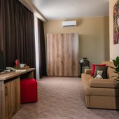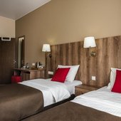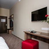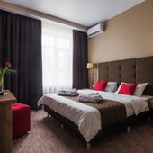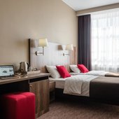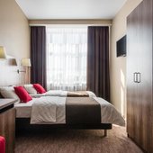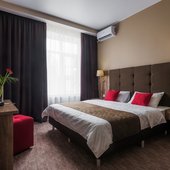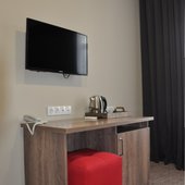 Номерной форд располагает пятью категориями, которые подойдут как для одноместного, так и четырехместного размещения. Все номера оснащены стильной мебелью, телевизором, холодильником, электрочайником. В отдельной ванной комнате есть фен, тапочки и косметические принадлежности.
