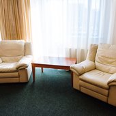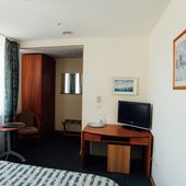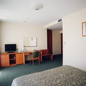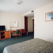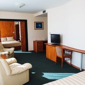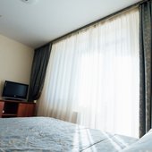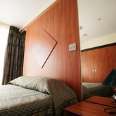 В номерах доступно проживание как одноместное, так и двухместное. Интерьер выполнен в светлых тонах и имеет индивидуальный дизайн.